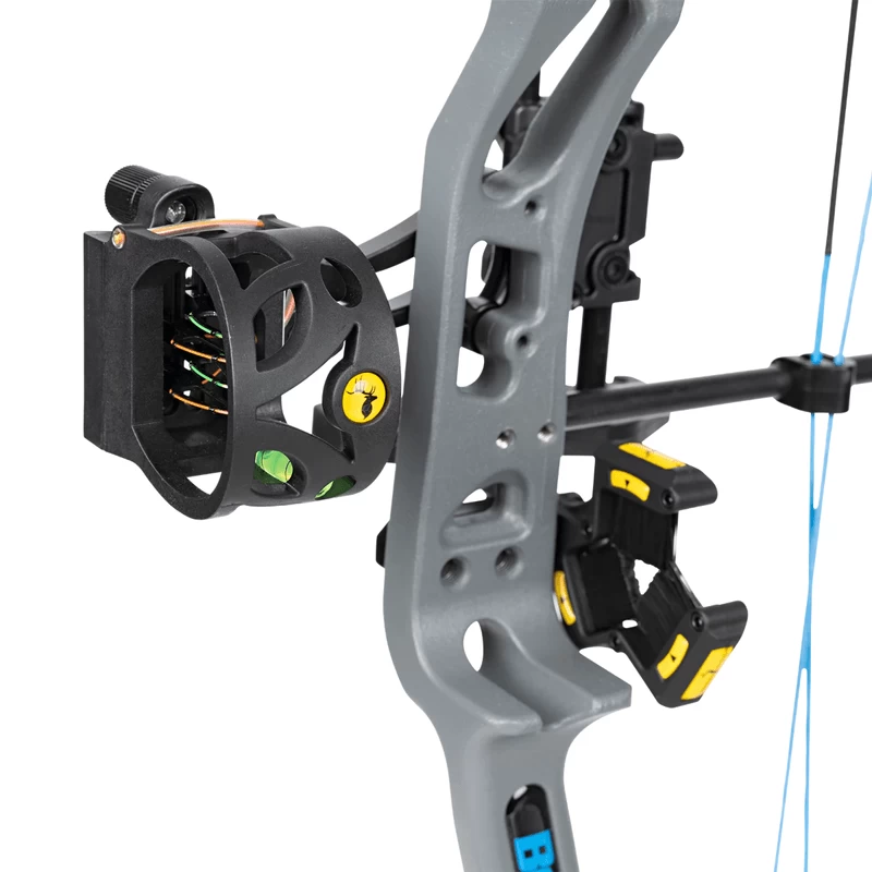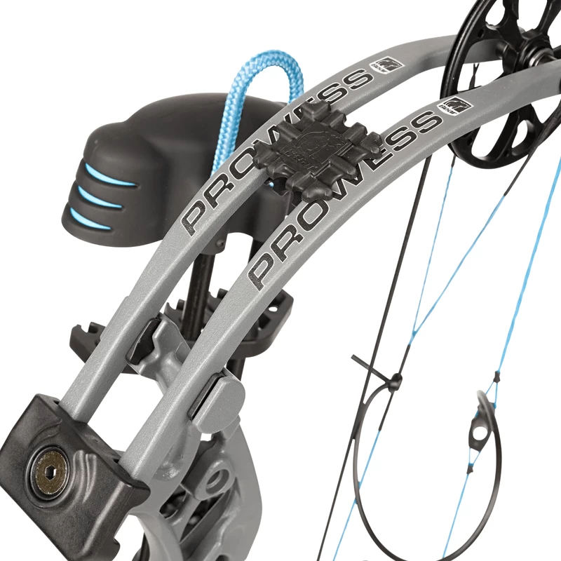 The Prowess is the ultimate bow that delivers premium performance for the female archer. Strategically designed to be ergonomic for women, the Bear Archery Prowess is a lightweight, easy to maneuver, single cam bow with Bear’s industry leading super smooth draw cycle. For 2022, the Prowess receives several updates including an all-new grey and electric blue finish, giving it a look to match the incredible performance. The Ready to Hunt bow comes equipped with Trophy Ridge accessories, which includes: a 4-pin sight, V-Biscuit, Stabilizer, 5-arrow quiver, stabilizer, wrist sling, D-loop, and a no tie peep sight.