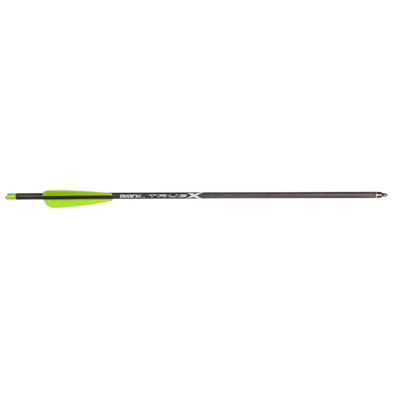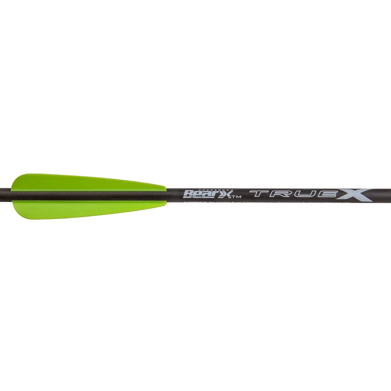 Featuring TrueX Nock Technology, the Bear X TrueX Crossbow Arrows are designed for crossbow hunters who demand the highest quality, speed, and accuracy from their equipment. Each 6-pack of TrueX Crossbow Arrows come fully equipped with 100 grain field points, inserts, and TrueX nocks for consistent and accurate arrow flight shot after shot. Every TrueX Crossbow Arrow is inspected and sorted for straightness within +/-.005”, fletched with 4” vanes, 20” long, and 370 grains for bone crushing penetration with each shot.