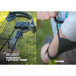 The Bear Archery Warrior 3 youth bow set is the ideal step-up bow for kids who advancing into the world of real archery hunting. Recommended for ages 11 and up, this versatile setup includes 2 Safetyglass arrows, 2-piece arrow quiver, armguard, finger tab, Whisker Biscuit arrowrest, and 1-pin sight. With a peak draw weight range of 24-29 lbs. and an adjustable draw length of 19″-25″, it’s versatile enough to bring a young archer through critical stages of development. Right hand only.