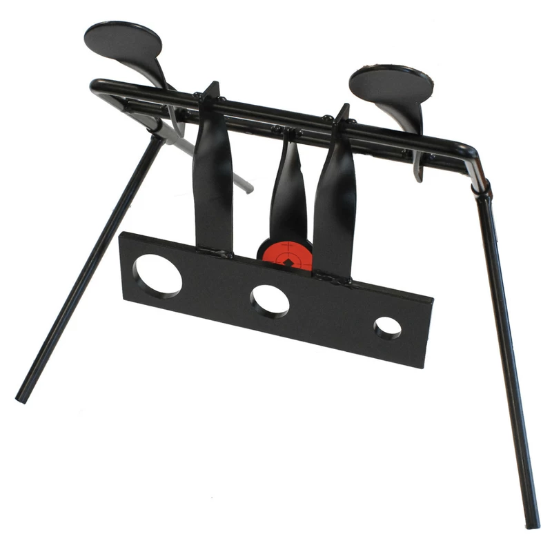 World of Targets Back Drop Precision Rimfire Target encourages the shooter to have accuracy to flip the paddles. The graduated shooting ports makes it more challenging as you move across the target to hit the next paddle up.
