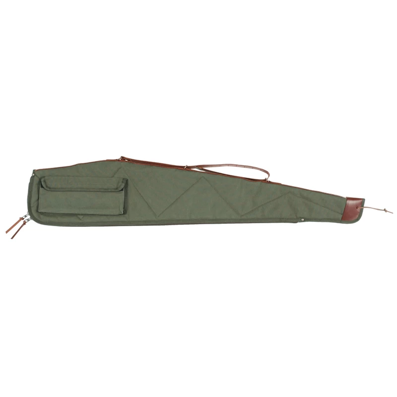 Bob Allen’s Rifle Case is constructed of canvas with quilted lining leather back strap and sling and a nylon zipper.