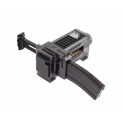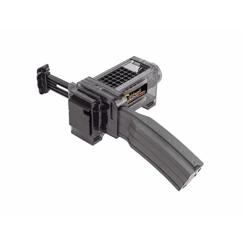 Simply put, the Caldwell AR Mag Charger revolutionizes the way ammo is handled and loaded into AR magazines. It is designed to accept 50 loaded rounds directly from any common 50 round ammo manufacturer box or from aftermarket 50 round plastic storage boxes. Simply align bullet tips and dump a box of ammo into the Mag Charger. The ammo is automatically aligned without touching a single round. Once filled with ammo, insert any AR magazine into the Mag Charger just as you would into a rifle. Then actuate the plunger back and forth loading 5 rounds per stroke as the spring loaded ammo carrier automatically advances aligning the next five rounds until magazine is fully loaded. The entire process of filling the Mag Charger with ammo and loading all 50 rounds into two magazines takes less than 15 seconds. An Ammo Transfer Tray is included to invert ammo that is positioned in boxes with the bullet tips oriented down or to stage bulk ammo for dumping into Mag Charger. Highly durable Polycarbonate construction, compatible with.223, 5.56 and.204 ammo.