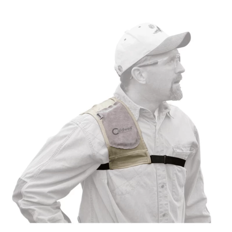 The Magnum Recoil Shield is designed to provide unparalleled recoil protection while sighting in your rifle, bench rest shooting, or participating in many other shooting activities. The size and shape of the Magnum Recoil Shield creates the perfect combination of function and comfort. It can be worn on the left or right shoulder and attaches with an easily adjustable side closure for a secure fit. The leather on the front secures the gun in place, while the leather on the back of the shield provides a comfortable feel and prevents the shield from sliding around on your shoulder. The shieldโs 1/2? thick, energy-absorbing pad provides excellent protection for calibers up to 300 Winchester Magnum.ย