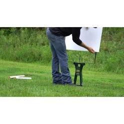 The Caldwell Ultimate Target Stand features an oversized backer to hold multiple large targets (two 16-inch targets side by side) and is constructed of an all-weather moisture resistant material. The large size makes sighting in easy, no more bullets missing the target. The modular frame design collapses to occupy much less space during transport & storage. The frame arms are constructed of durable steel rod and hold the backer securely in place. Removable ground stabilizer adds support from wind during use and conveniently stows onto the feet. The base of the stand is open, allowing you to use your foot to drive the molded-in metal spikes solidly into the ground. It even has an integrated storage container for holding miscellaneous range supplies such as staples or target pasters.