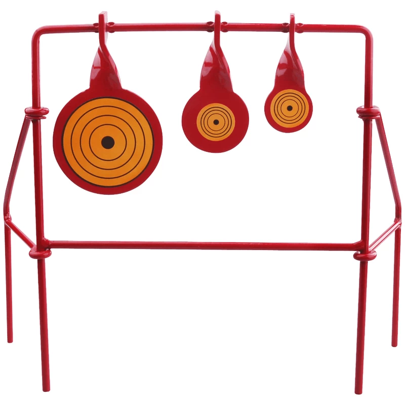 Plinking is even more fun when there’s no target resets. This sharpshooter target uses the bullet force to spin the target over the bar and back into the set position. Durable steel construction and four support legs create a stable long lasting target. Powder paint finish. Â