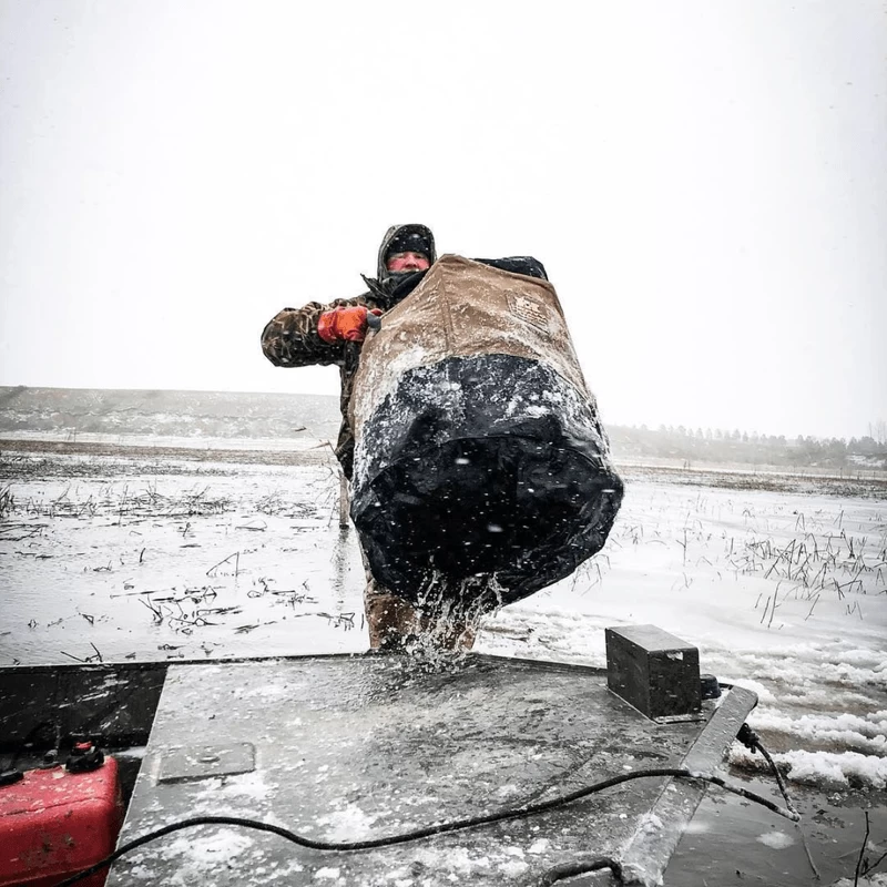 The Heavy Hauler Big Top Decoy Bag is the easiest and fastest to load decoy bag on the market. No more “stuffing” decoys. Simply load and go, and you’re on your way home. Perfect for sliding anchors or any Texas rigged decoys. Easily drop in a dozen decoys at a time, no help needed.