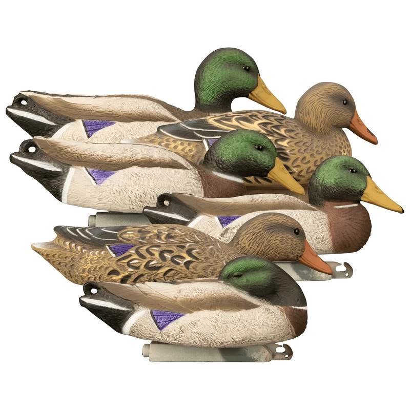 Full – Size Mallard, Foam FilledThis Full – Size mallard pack has all six decoys with different head positions including new skimmers, and a new sleeper drake Realism has definitely been taken to the next level with this decoy package. Foam filling adds the durability every hunter needs making this versitile position pack a bullet – proof option.