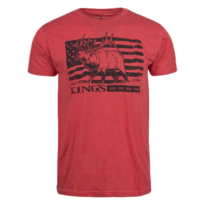 Screen printed King’s logo with hand drawn trophy bull and American flag. Â