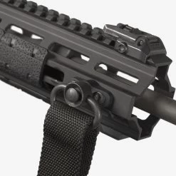 The M-LOK QD Sling Mount provides a forward attachment point for the Magpul MS4 Sling and other push-button QD slings. Machined from Mil-Spec anodized aluminum, the low-profile M-LOK QD Sling Mount features beveled edges to reduce snagging and has an anti-rotation design that prevents swivels from spinning.