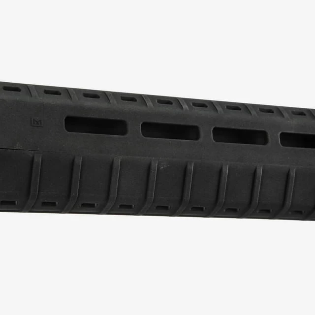 Designed with versatility in mind, M-LOK slots at the two, six, and ten oclock positions allow the attachment of optional Picatinny rail sections and other accessories for mounting tactical lights, slings, grips, etc. Reinforced, heat-resistant polymer construction provides durability without the weight and expense of an aluminum rail hand guard. A large front extension and lower lip protects the user from the hot front sight gas block assembly and maximizes useable hand guard length.