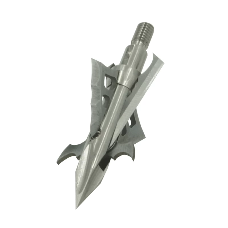 Taking a reputation for broadheads with bone-crushing capabilities, the Muzzy Trocar HB-Ti takes the potential for destruction to a whole new level thanks to a streamlined titanium ferrule, .050-inch-thick one-piece single-bevel serrated fixed blade edge and a pair of expandable .039-inch-thick expandable wing blades to maximize damage. This compact and aerodynamic 100-grain broadhead flies as true as a field point prior to expansion but unleashes total cutting surfaces of 2 5/8-inches for complete devastation upon impact.