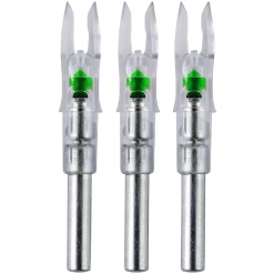 Use Nockturnal Easton Lighted Nocks to make arrows easier to see and retrieve after they land. They are especially helpful when bow-hunting at night and are made of clear plastic for maximum light visibility. The ultra-light design lets shafts maintain their speed, while a string-activated switch turns them on only when needed. They also feature extra-long fibers routed through the bracket, making them durable and allowing for easier fiber replacement. This green crossbow lighted nock comes in a 3-pack.