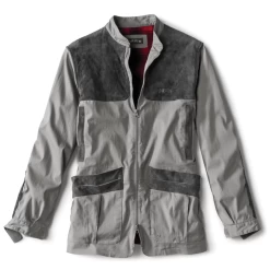 All the fit and function shooters need is built into the design of their ambidextrous clays jacket. The durable cotton/nylon blend fabric features tech stretch for unrestricted comfort. Spacious front, flannel-lined handwarmer pockets zip closed and won’t interfere with gun mounting. Body is lined with flannel for warmth, sleeves with nylon for smooth arm motion and unrestricted gun mounting when shooting. Ambidextrous shooting patches.