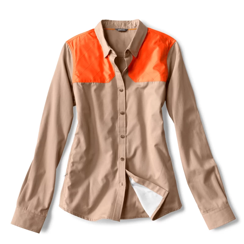 Orvis’ Women’s Midweight Shooting Shirt offers the comfort of cotton in a moisture-wicking synthetic blend.