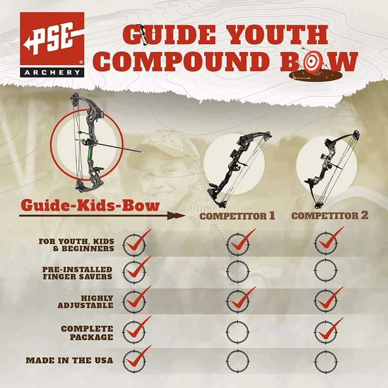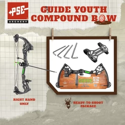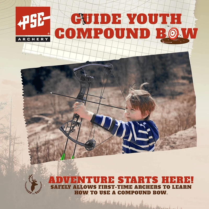 FINE TUNE THEIR SHOOTING SKILLS WITH THE PSE GUIDE YOUTH COMPOUND BOW SET.