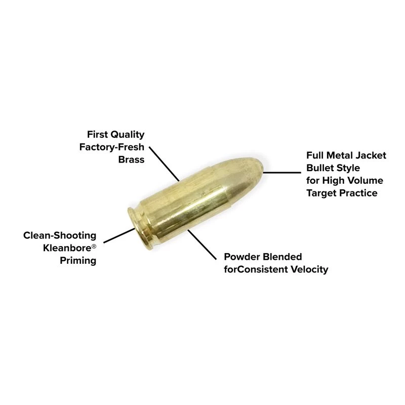 All UMC handgun ammunition is American-made in Lonoke, Arkansas, using first-quality, factory-fresh brass and clean-shooting Kleanbore primers to provide the best value for practice, personal defense and hunting. UMC handgun ammunition offers the choice of full metal jacket, soft point, and jacketed hollow point bullets in several popular handgun calibers. You’d be hard-pressed to find a better value anywhere.