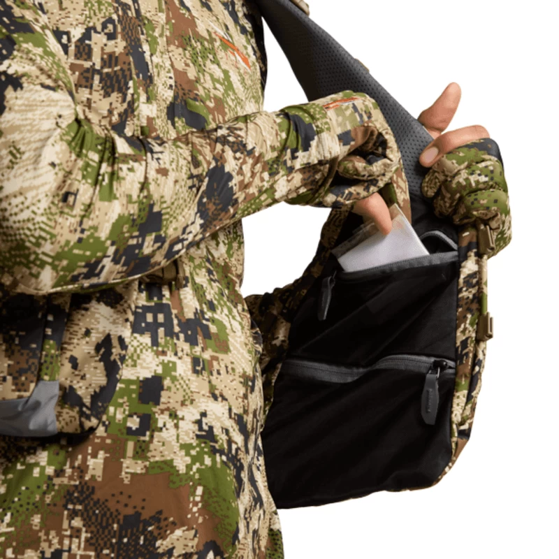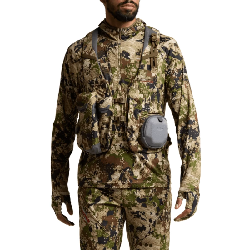 This is no traditional turkey vest. Sitka took a pack-like approach and developed a comfortable and efficient vest based on the movement and organizational needs of run-and-gun turkey hunting. It has ample yet minimalist storage — including magnetic-closing pockets — to keep box calls, pot calls, strikers and other tools organized and dry. Adjustable straps create a secure fit; a drop-down seat deploys and cinches back up quickly and securely. Â