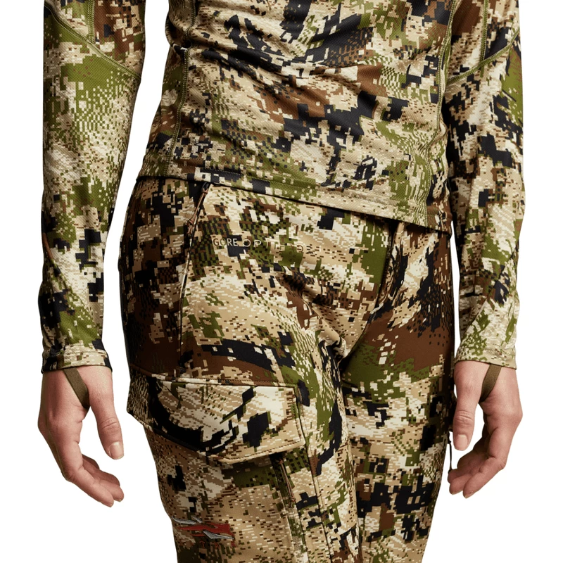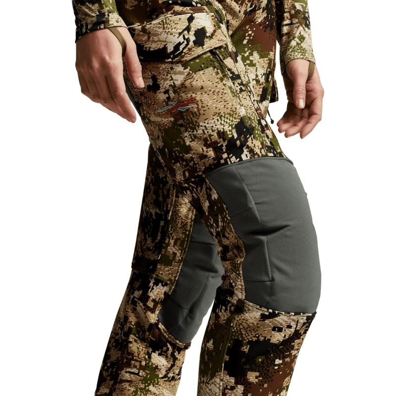 A durable Big Game pant built tough for extended forays above timberline, The Timberline Pant features a 4-way stretch fabric in an ergonomic cut that won’t slow you down when gaining vert, but will keep you warm when settling in for a slow stalk. All pockets feature silent snaps and quiet zips that won’t give you away, and provide quick access to small essentials. The removable knee pads offer additional protection whether scrambling over sharp rocks in the NWT or picking your way through cholla in the Sonora Desert. The fit is athletic – with tapered legs and a low profile waist that won’t bunch or chafe under a pack. The seat and knees are reinforced with a waterproof nylon Ripstop, so a long slog on a wet saddle or a quick seat in the snow won’t leave you cold.
