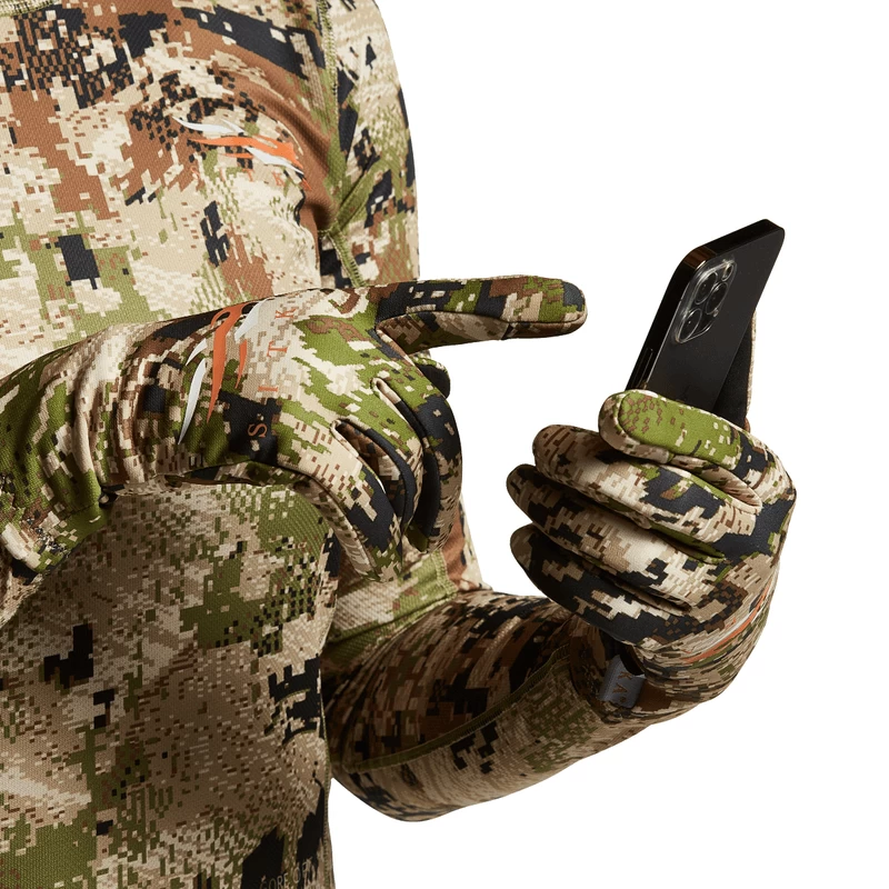 Designed for comfort without the loss of dexterity, the Traverse Glove provides a soft, stretchy feel. Touchscreen compatibility allows you to easily use your phone or GPS, while a light silicone print on the palm provides grip on your treestand ladder, firearm or bow. Fabrics used in the glove are constructed from recycled materials.