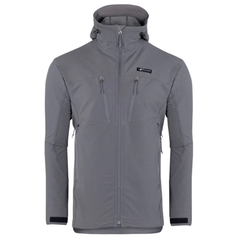 The De Havilland Jacket is a highly breathable softshell designed with the hunter in mind. With a tight weave DWR face and lightly brushed fleece backer, Stone Glacier specifically sought out this textile for its performance under high exertion situations. It boasts an excellent balance of weather protection while maintaining a high level of breathability. Articulated elbows and an athletic fit paired with strategically placed chest and hand pockets that are accessible while wearing a backpack make this jacket a no-brainer. Add a slim fit hood and esthetically pleasing color blocking to break up body symmetry, and this jacket will quickly become your go-to favorite.