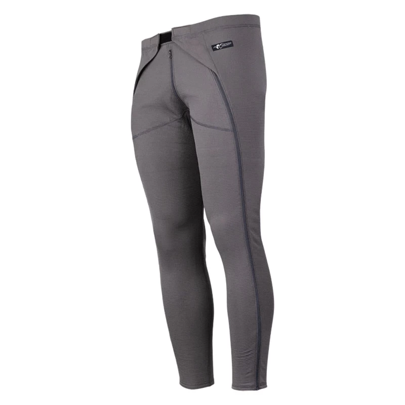 The cold weather mid-layer bottom just got even better with full-leg zips and a velcro waist closure that allow an easy on/off in the field without taking off your pants or boots. The side zips are also placed front-forward to eliminate hot spots under pants and a pack, and the bottom still integrates with all StratumLayered Zipper System pants in the SG line to allow instant ventilation from skin to shell. And best of all, a new zippered fly makes it a breeze to take a whiz. Â