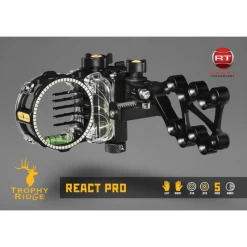 Lighter, stronger, and more reliable, the Trophy Ridge React Pro 5-Pin sight uses exclusive React Technology combined with the premium features of a top-of-the-line target sight to give you consistently high-performance hunt after hunt. With React Technology, you will have dead-on accuracy after only 2 pin adjustments as the technology automatically sights in the remaining pins. Make easy corrections without any tools with advanced micro-click windage and elevation adjustments.