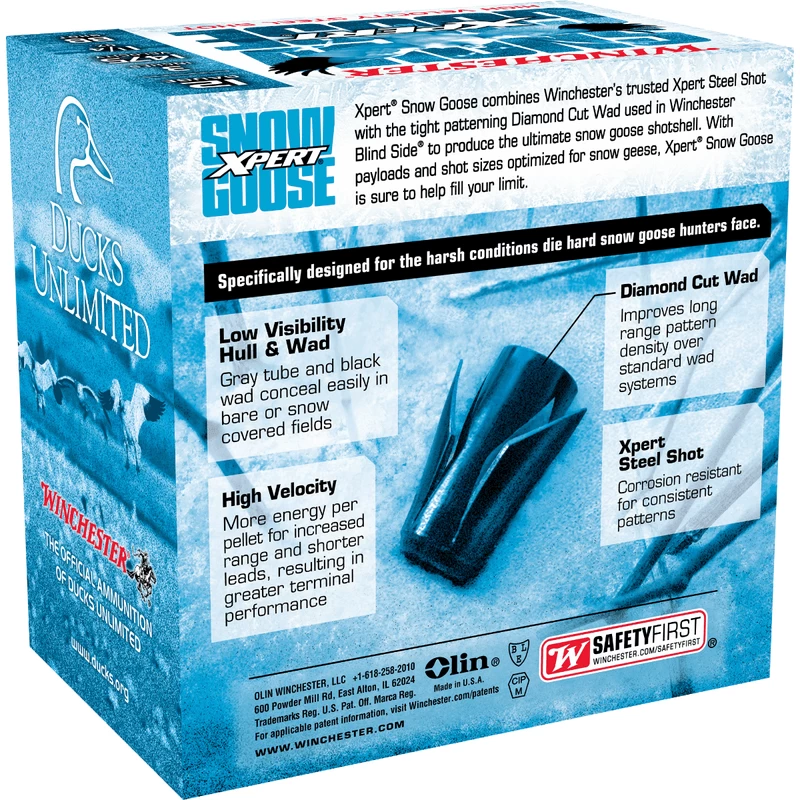 Xpert Snow Goose combines Winchester’s trusted Xpert Steel Shot with the tight patterning Diamond Cut Wad used in Winchester Blind Side to produce the ultimate snow goose shotshell. With payloads and shot sizes optimized for snow geese, Xpert Snow Goose is sure to help fill your limit.